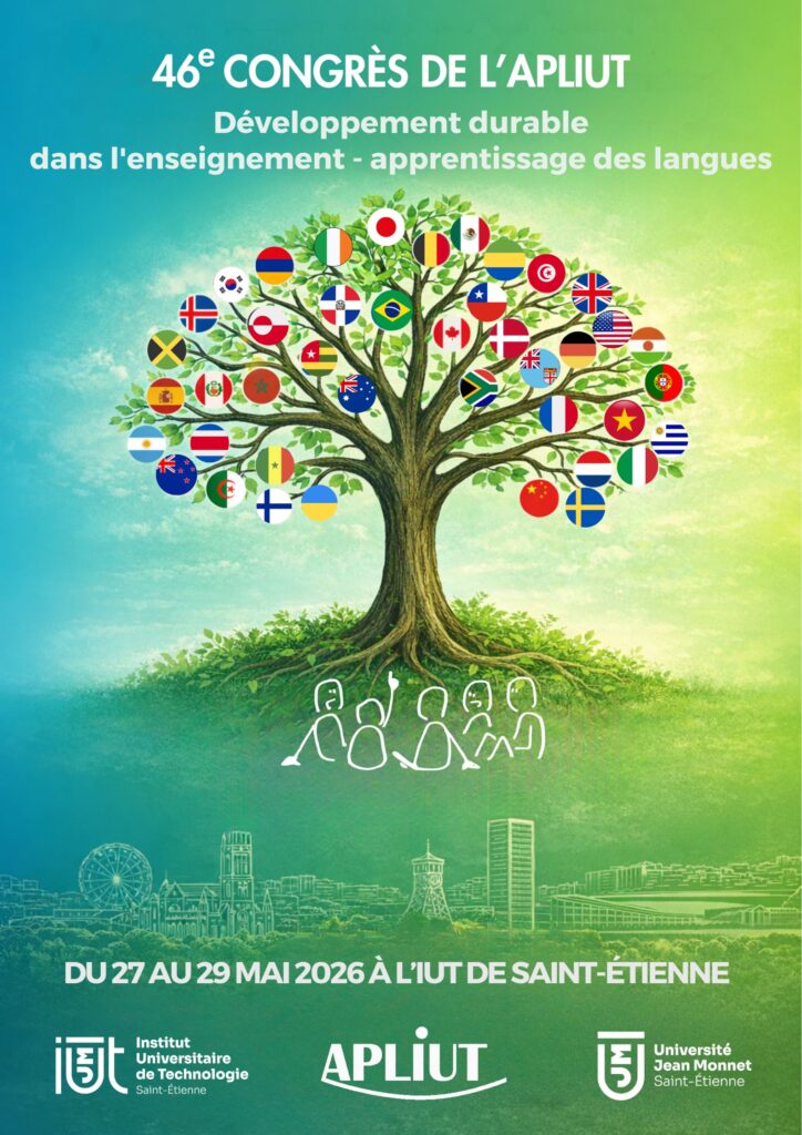 Le 46e congrès de l’APLIUT se déroulera à Saint-Étienne les 27, 28 et 29 mai 2026 avec pour thématique les dimensions écologiques dans l’enseignement-apprentissage des langues.